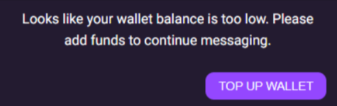 Wenn Ihr Guthaben im Guthaben nicht ausreicht, können Sie keine Nachricht senden. Sie sehen folgende Meldung: „Ihr Guthaben ist anscheinend zu niedrig. Bitte laden Sie Guthaben auf, um weiter chatten zu können.“ Anschließend wird die Schaltfläche „Guthaben aufladen“ angezeigt, mit der Sie direkt im Chat Guthaben hinzufügen können.